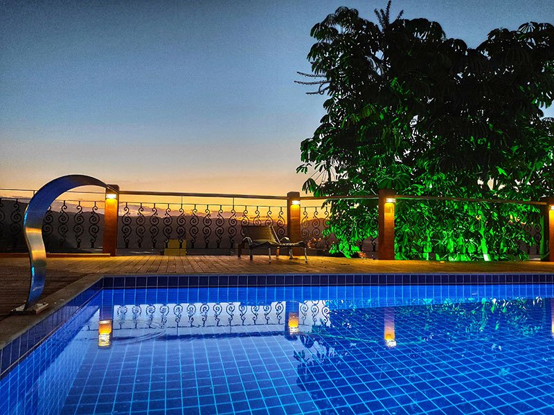 Nossa área de lazer conta com uma deliciosa piscina com cascata e iluminação noturna que está disponível para todos os hóspedes, churrasqueira, espreguiçadeiras e um belo jardim.